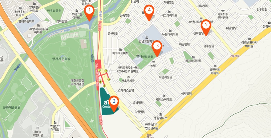 4 언남문화체육센터 공영주차장 서울특별시 서초구 양재동 237번지 기본요금 (시간) 500원/10분 (추가 요금 시간 동일)